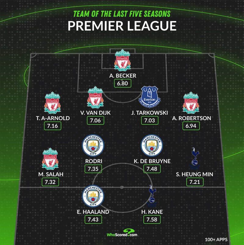 تیم منتخب پرمیرلیگ در ۵ فصل اخیر با توجه به نمرات هواسکورد: