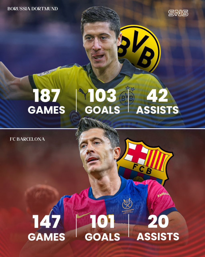 📊 مقایسه عملکرد روبرت لواندوفسکی در بورسیا دورتموند و بارسلونا