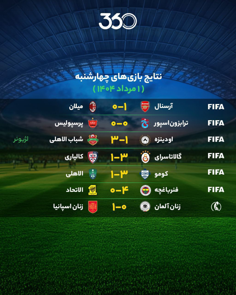 🔺نتایج مهمترین بازیهای چهارشنبه ۱ مرداد