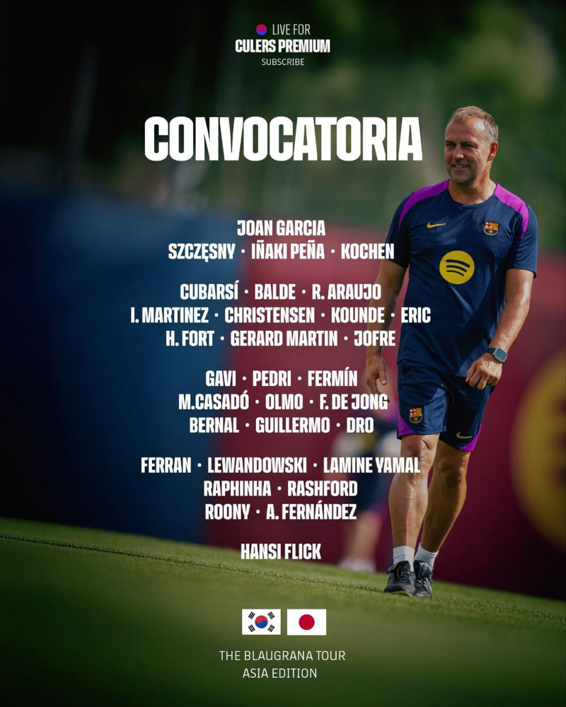 لیست بارسلونا برای اردوی پیش فصل در ژاپن و کره جنوبی