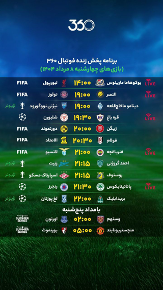 ۱۳:۴۵ . چهارشنبه ۸ مرداد ,۱۴۰۴