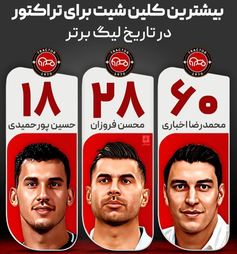🔴 بیشترین کلین شیت برای تراکتور در تاریخ لیگ برتر