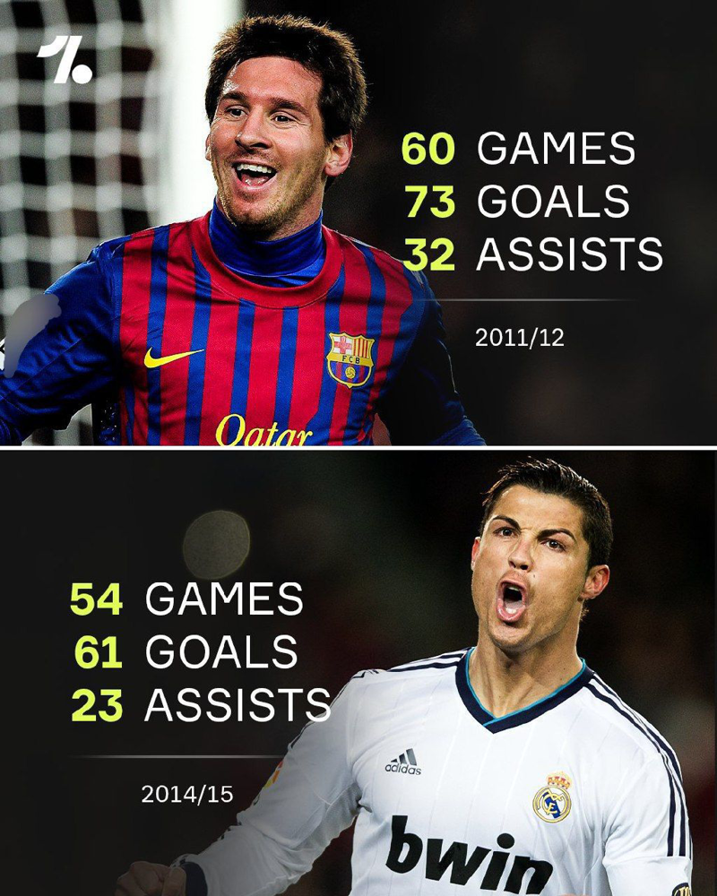بهترین فصل های رونالدو و مسی از لحاظ آمار
