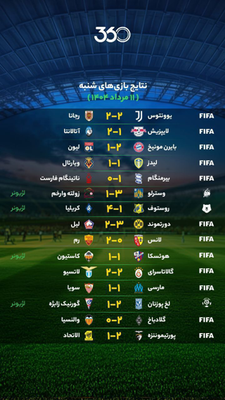 🔺نتایج مهمترین بازیهای شنبه ۱۱ مرداد