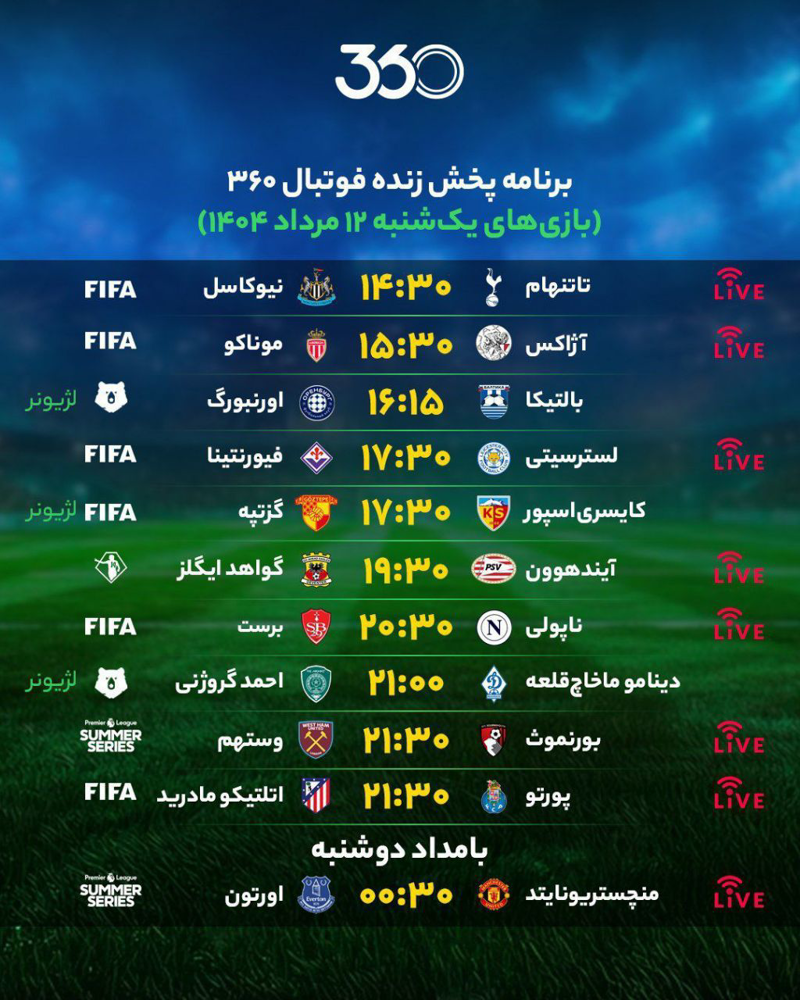 🔺نتایج مهمترین بازیهای یکشنبه ۱۲ مرداد
