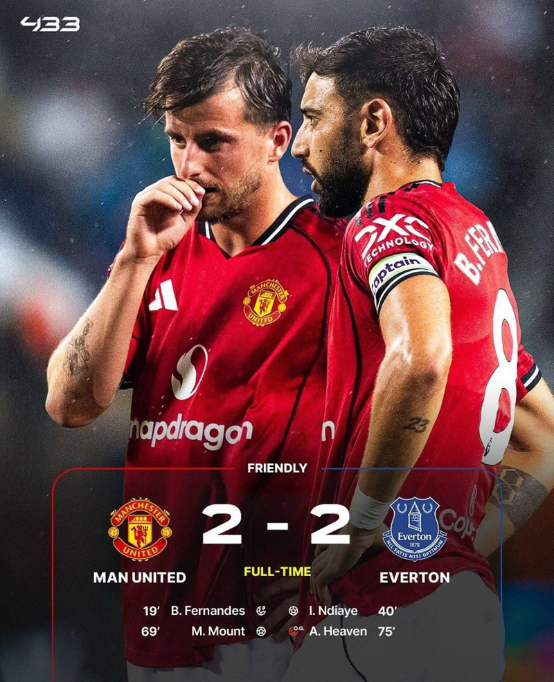 🔴 تساوی ۲ بر ۲ منچستریونایتد مقابل اورتون در دیداری دوستانه.