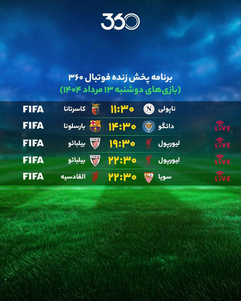 📝 نتایج مهمترین بازیهای دوشنبه ۱۳ مرداد