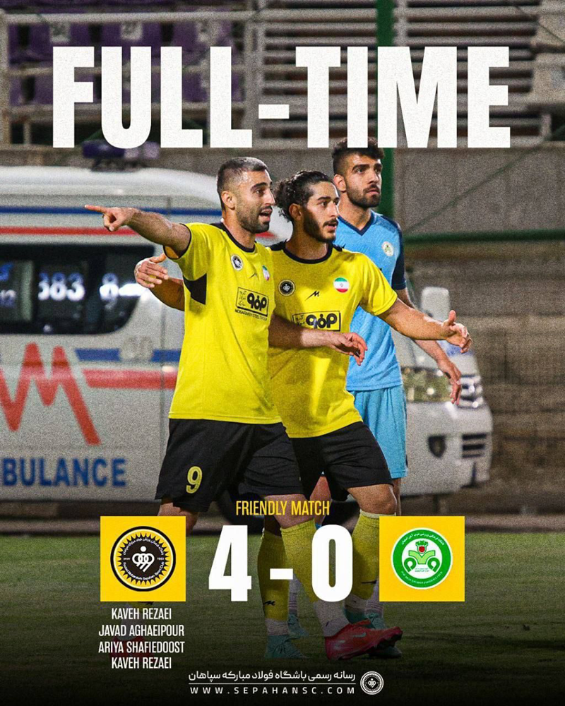 🟡 تیم سپاهان امروز در آخرین دیدار تدارکاتی پیش‌فصل خود با گل‌های کاوه رضایی (۲)، جواد آقایی‌پور و آریا شفیع‌دوست، ۴ بر‌ ۰ ذوب‌آهن را شکست داد.