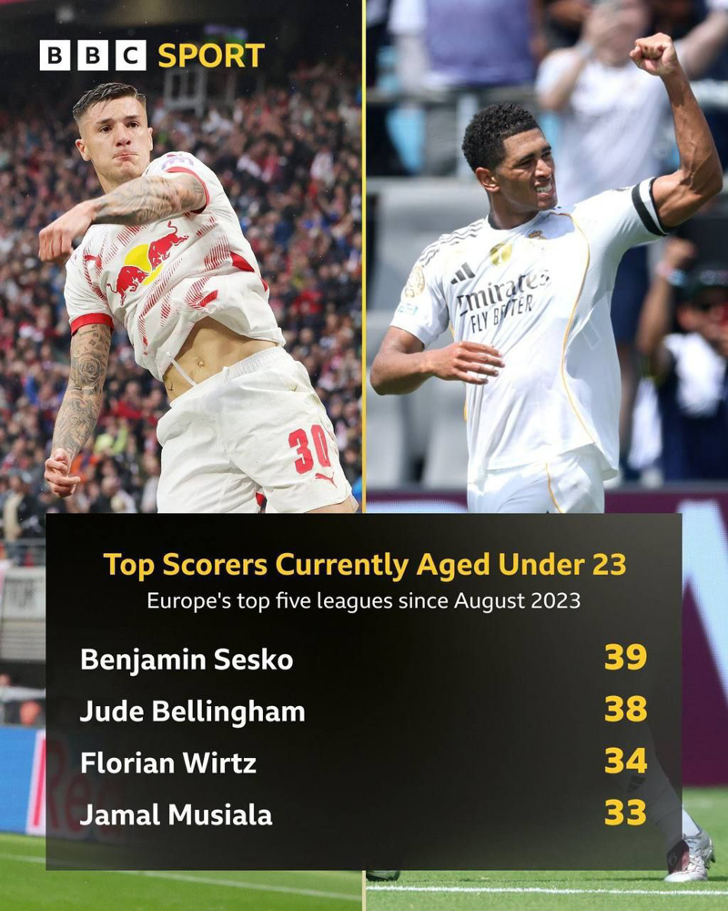 🔥 برترین گلزنان زیر ۲۳ سال ۵ لیگ برتر اروپا از آگوست ۲۰۲۳