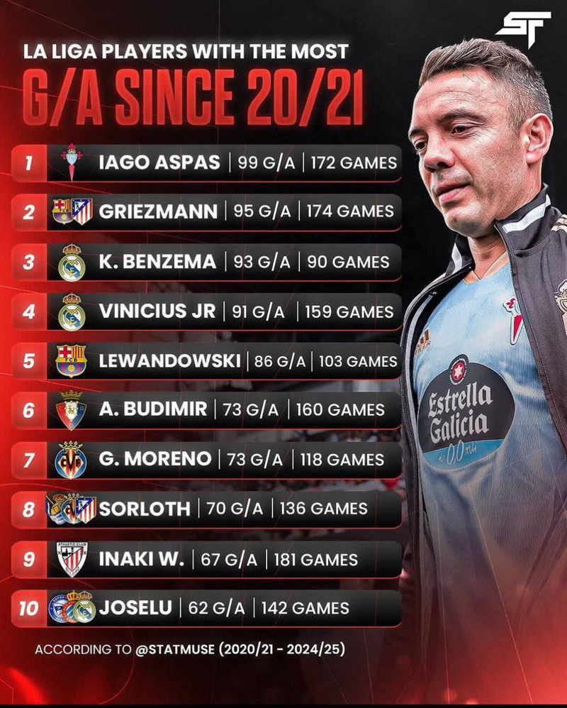 ⭕ |› رتبه بندی بازیکنان با بیشترین گل - پاس گل در لالیگا از فصل ۲۰۲۰/۲۰۲۱ تاکنون ؛