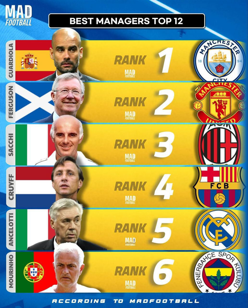 📊رتبه بنده برترین مربی‌های تاریخ فوتبال