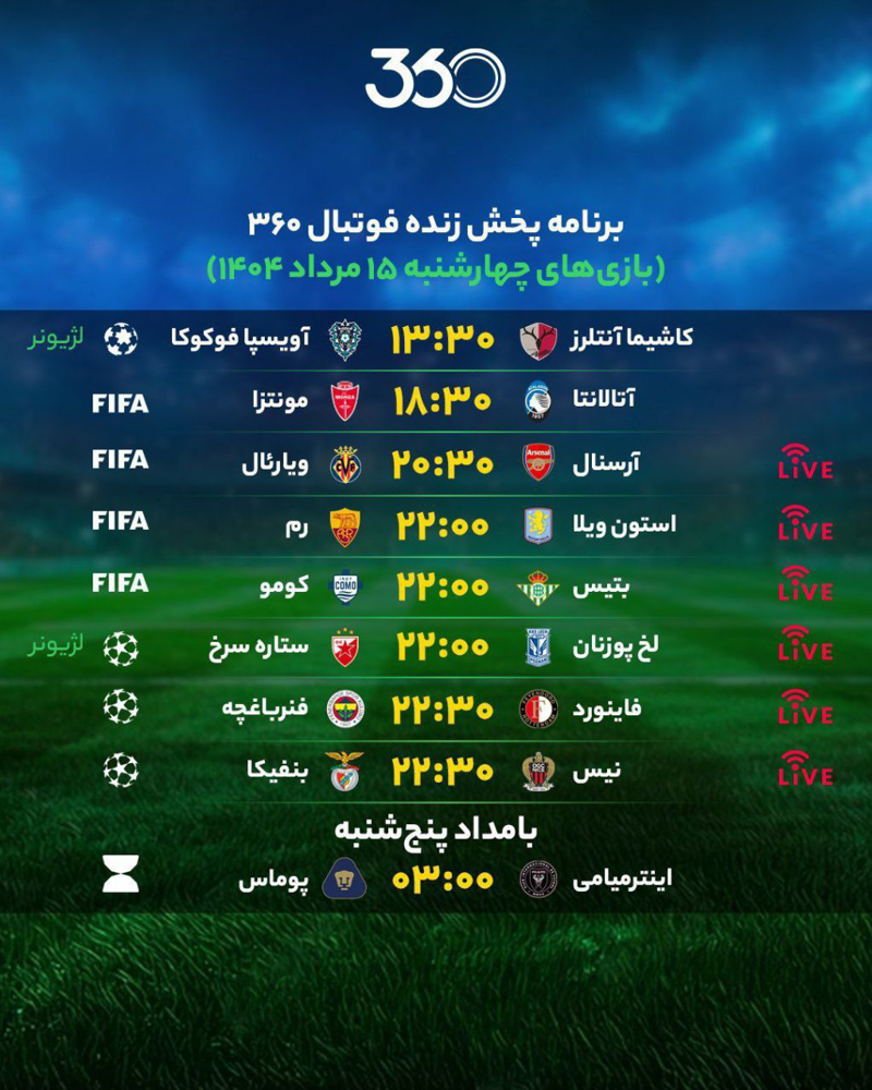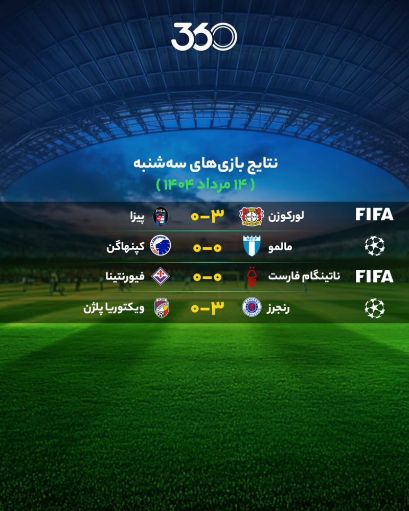 🔺نتایج مهم‌ترین بازی‌‌‌‌های چهارشنبه ۱۵ مرداد