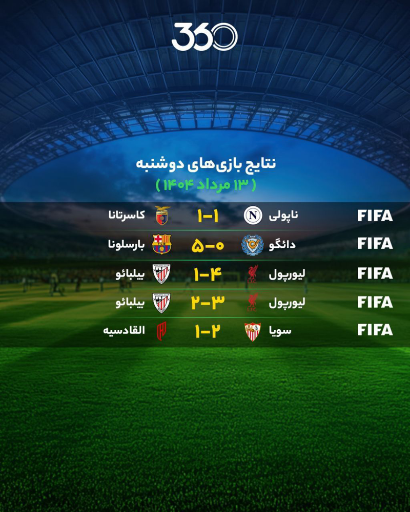📝 نتایج مهم‌ترین بازی‌‌‌‌های دوشنبه ۱۳ مرداد