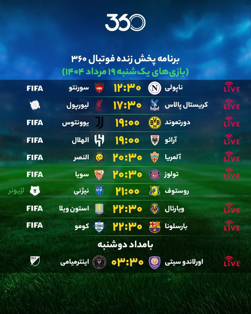 🔺نتایج مهمترین بازیهای یکشنبه ۱۹ مرداد