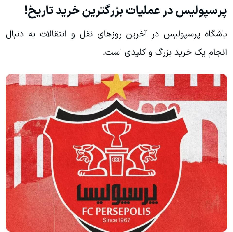🔴پرسپولیس درحال مذاکره با بازیکنی است ک بزرگترین خرید تاریخ خود محسوب می‌شود!