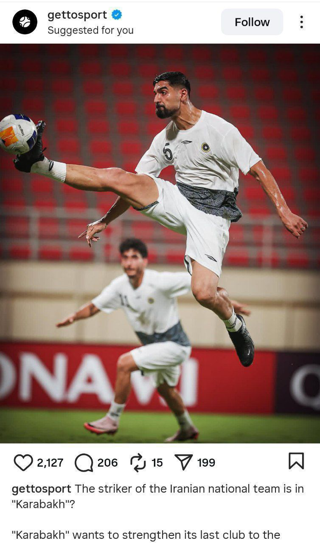 🔺باشگاه قره باغ آذربایجان به دنبال جذب رضا اسدی است.