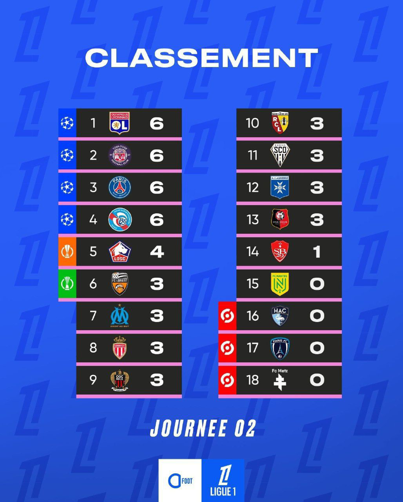📊 جدول لوشامپیونا در پایان دیدار های هفته دوم.