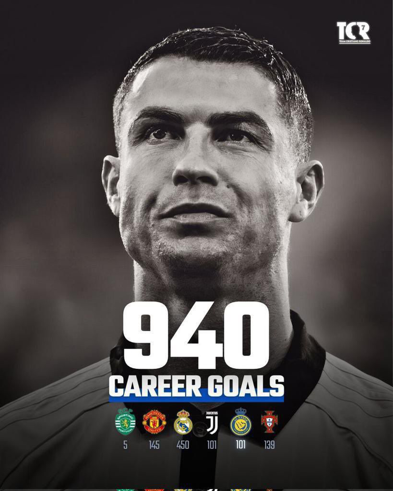 🔺رونالدو با گلزنی در دیدار امشب مقابل التعاون به 940 گل زده در دوران حرفه ای خود رسید