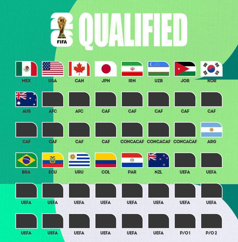 🚨🏆تیم‌هایی که تا این لحظه به جام جهانی 2026 صعود کردند.⭕️