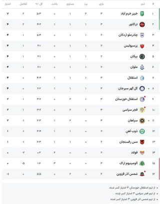 ✅ جدول لیگ با صدرنشینی خیبر و ۴ تیم ۵ امتیازی
