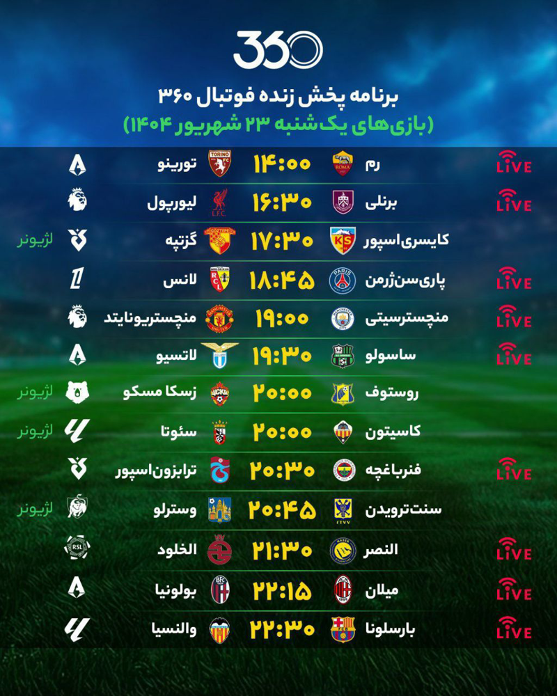 برنامه بازی های امروز. 📆امروز یک شنبه ۲۳ شهریور ۱۴۰۴