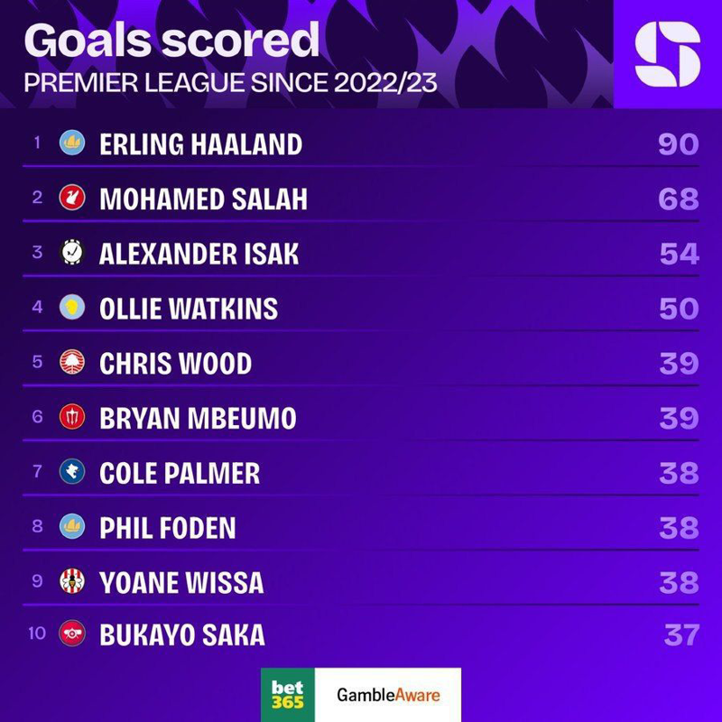 📊 ارلینگ هالند بهترین گلزن لیگ برتر انگلیس از زمان پیوستن به منچسترسیتی.
