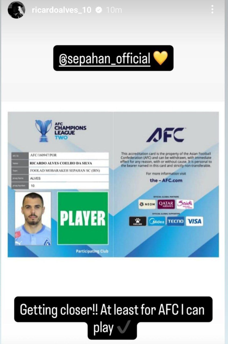 کارت بازی ریکاردو آلوز برای لیگ و مسابقات داخلی سپاهان صادر شد
