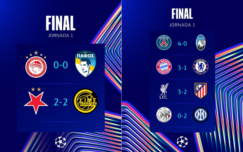 🏆 نتایج کامل مسابقات امشب لیگ قهرمانان اروپا