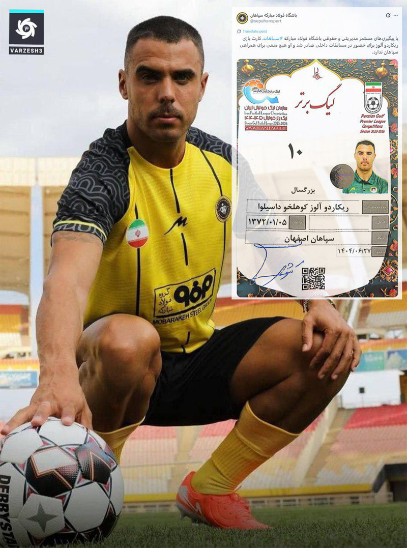 کارت بازی ریکاردو آلوز برای لیگ و مسابقات داخلی سپاهان صادر شد