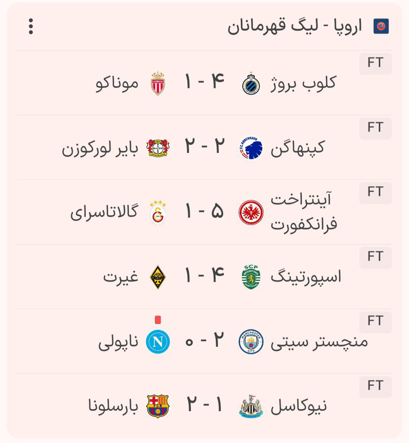 نتایج امشب چمپیونزلیگ