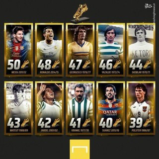 📊 بازیکنایی که بیشترین کفش طلا را کسب کردند