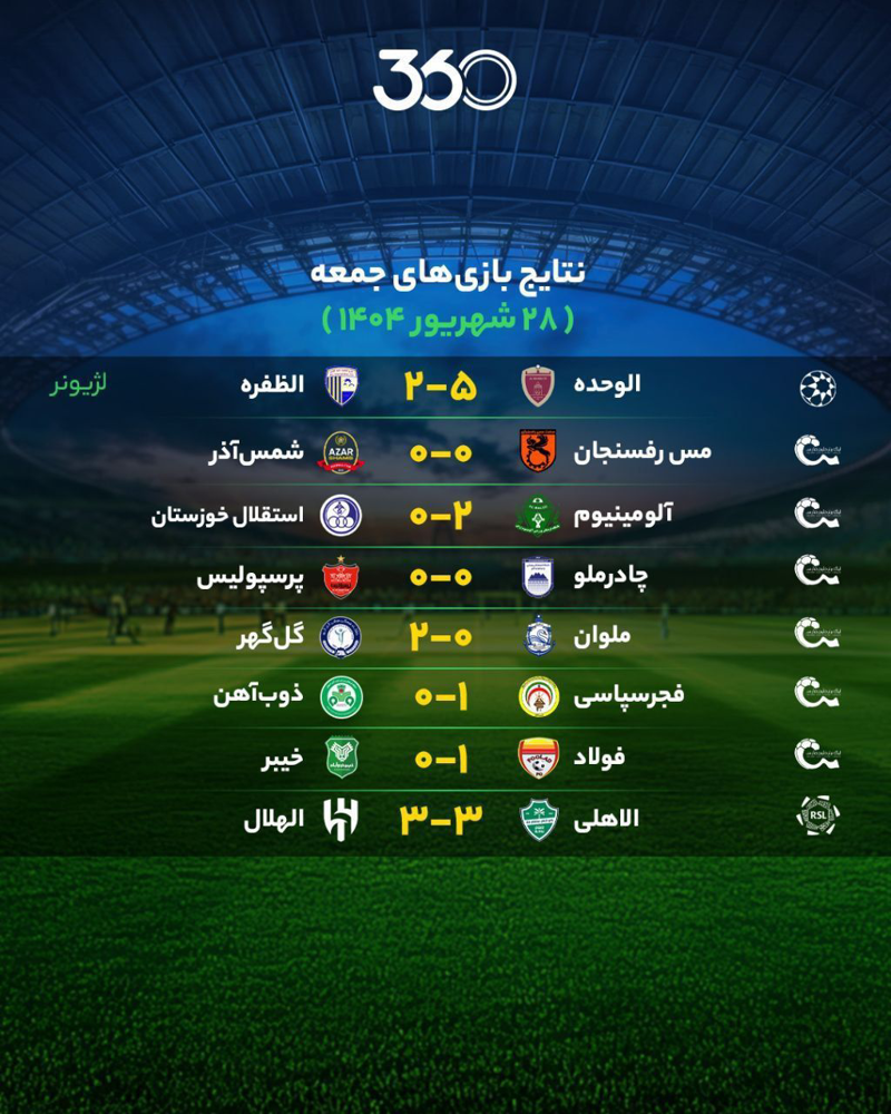 🔺نتایج مهم‌ترین بازی‌‌‌‌های جمعه ۲۸ شهریور