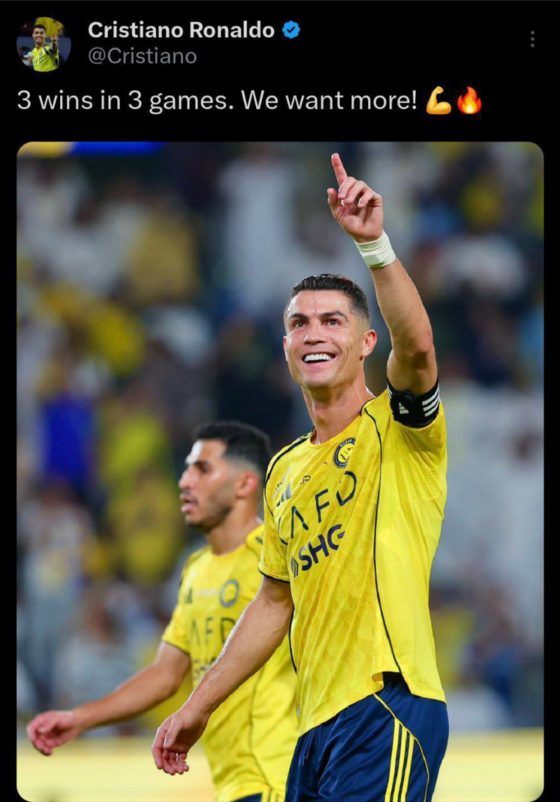 ۳ بازی، ۳ امتیاز، ما بیشتر میخواهیم؛ واکنش کریستیانو رونالدو به برد ۵ گله دیشب این تیم و گلزنی او