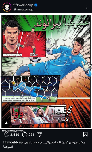 🔺پست جدید صفحه رسمی جام جهانی از پنالتی ای که علیرضا بیرانوند از کریستیانو رونالدو گرفت و یک ایران را سرافراز کرد
