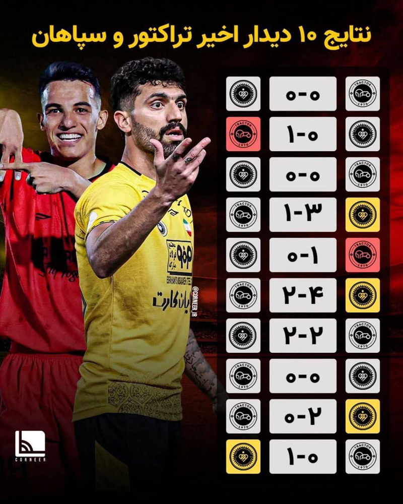 🔸 سپاهان فصل جدید را با ۵ بازی (در همه رقابتها) بدون برد آغاز کرده و با کسب تنها ۲ امتیاز از ۹ امتیاز ممکن، برای فرار از بحران نیازمند پیروزی مقابل تراکتور است.