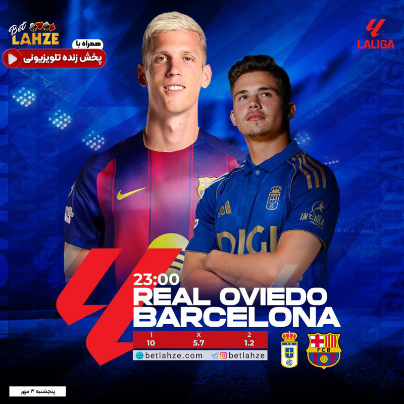 ⚽️ رئال اوویدو 🆚 بارسلونا 🗓 تاریخ: پنجشنبه ۳ مهر ⏰ ساعت: ۲۳:۰۰ به وقت تهران 🏆 لالیگا اسپانیا🌏