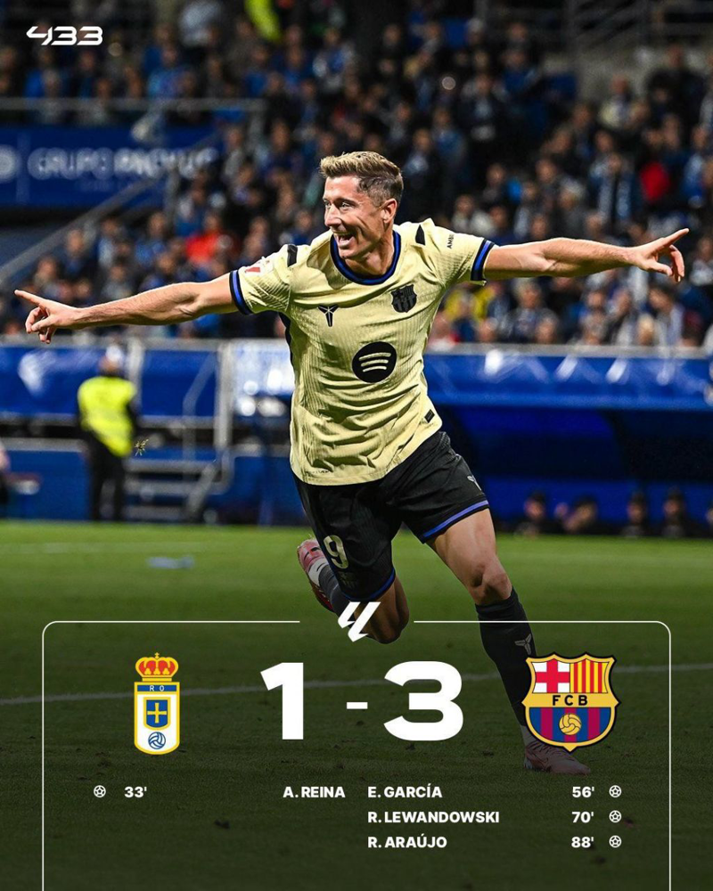 🏆 رئال اویدو 1 _ بارسلونا 3 | برتری خارج از خانه فلیک و شاگردان با گلزنی لواندوفسکی