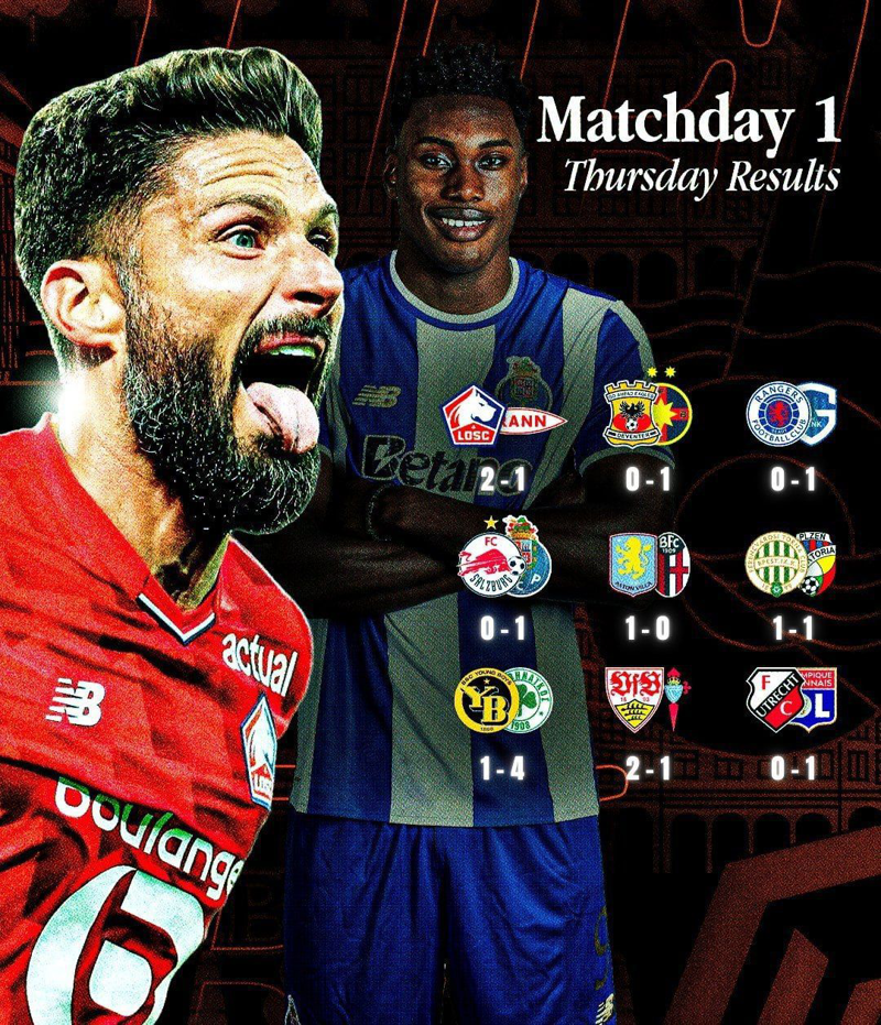 🏆 نتایج کامل تمام مسابقات شب دوم در هفته اول لیگ اروپا2026
