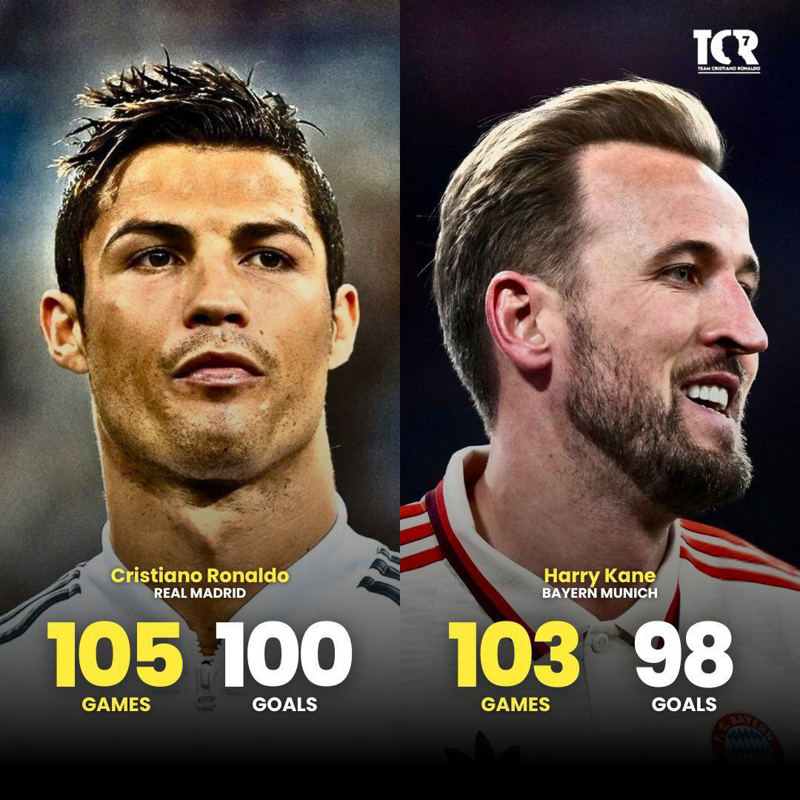 🔝 کریستیانو رونالدو سریعترین بازیکنی است که به رکورد ۱۰۰ گل برای یک باشگاه رسیده است، هری کین ۲ بازی فرصت دارد تا به این رکورد CR7 برسد یا حتی از آن عبور کند.