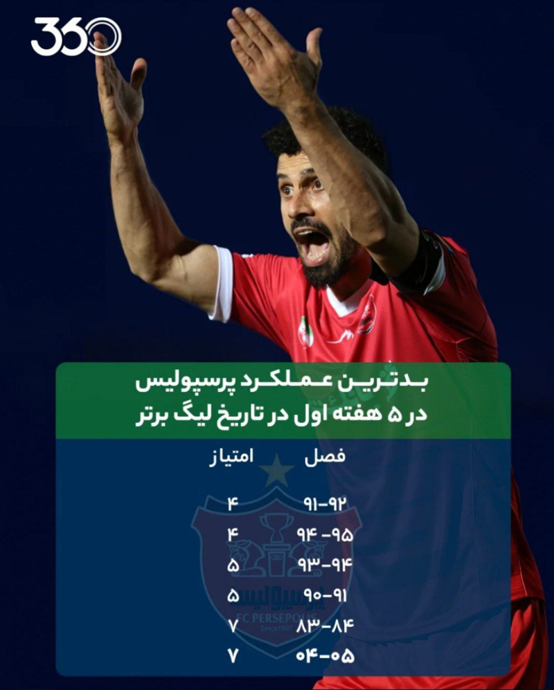 بدترین عملکرد پرسپولیس در پنج هفته اول در تاریخ رقابت‌های‌لیگ‌برتر! پرسپولیسِ مدل 1404 ضعیف ترین نسخه تهاجمی سرخ‌ها در تاریخ لیگ!