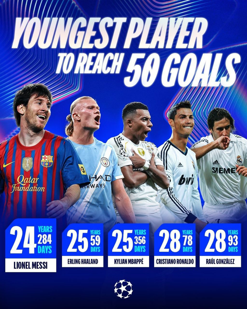 جوان ترین بازیکنایی که به آمار 50 گل زده در چمپیونزلیگ رسیدن @foo_tball
