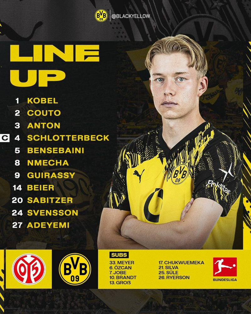 🟡 هفته پنجم بوندسلیگا | ترکیب دورتموند مقابل ماینتس