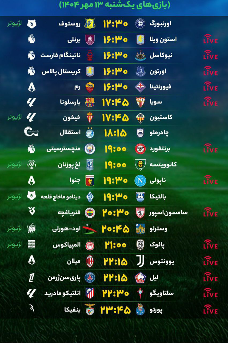 برنامه بازیهای امروز یکشنبه ۱۳ مهر ۱۴۰۴