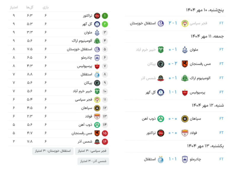 🇪🇺 نتایج و جدول لیگ برتر در پایان هفته ششم