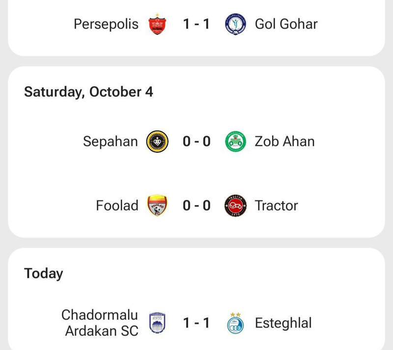 🔴 تساوی عادی و بدون گل دیگر در لیگ برتر اینبار تقابل تراکتور و فولاد.