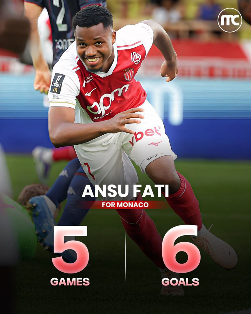 آنسو فاتی در ۵ بازی اخیرش برای موناکو ۶ گل زده!