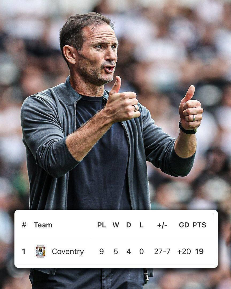 📊 کاونتری با هدایت فرانک لمپارد، تنها تیم لیگ برتر و چمپیونشیپ است که در فصل جاری متحمل شکست نشده است!