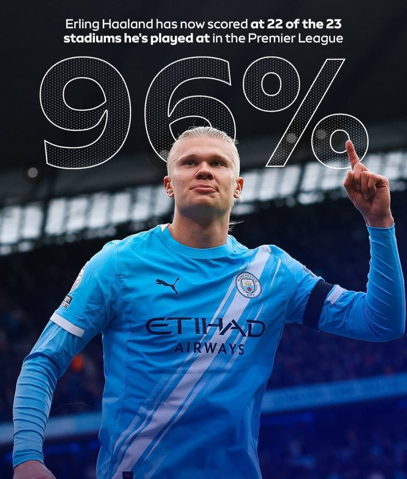 📊 ارلینگ هالند در ٢٢ استادیوم از ٢٣ استادیومی که در پریمیرلیگ به میدان رفته موفق به گلزنی شده است.