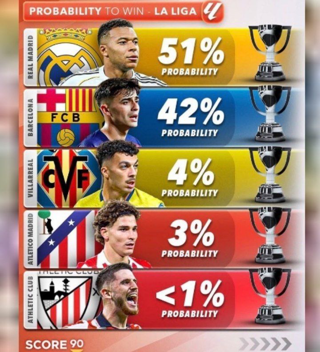 📊 پس از شکست سنگین بلوگرانا مقابل سویا! بیشترین درصد شانس برای فتح لالیگا ۲۰۲۶ از نگاه SCORE90.