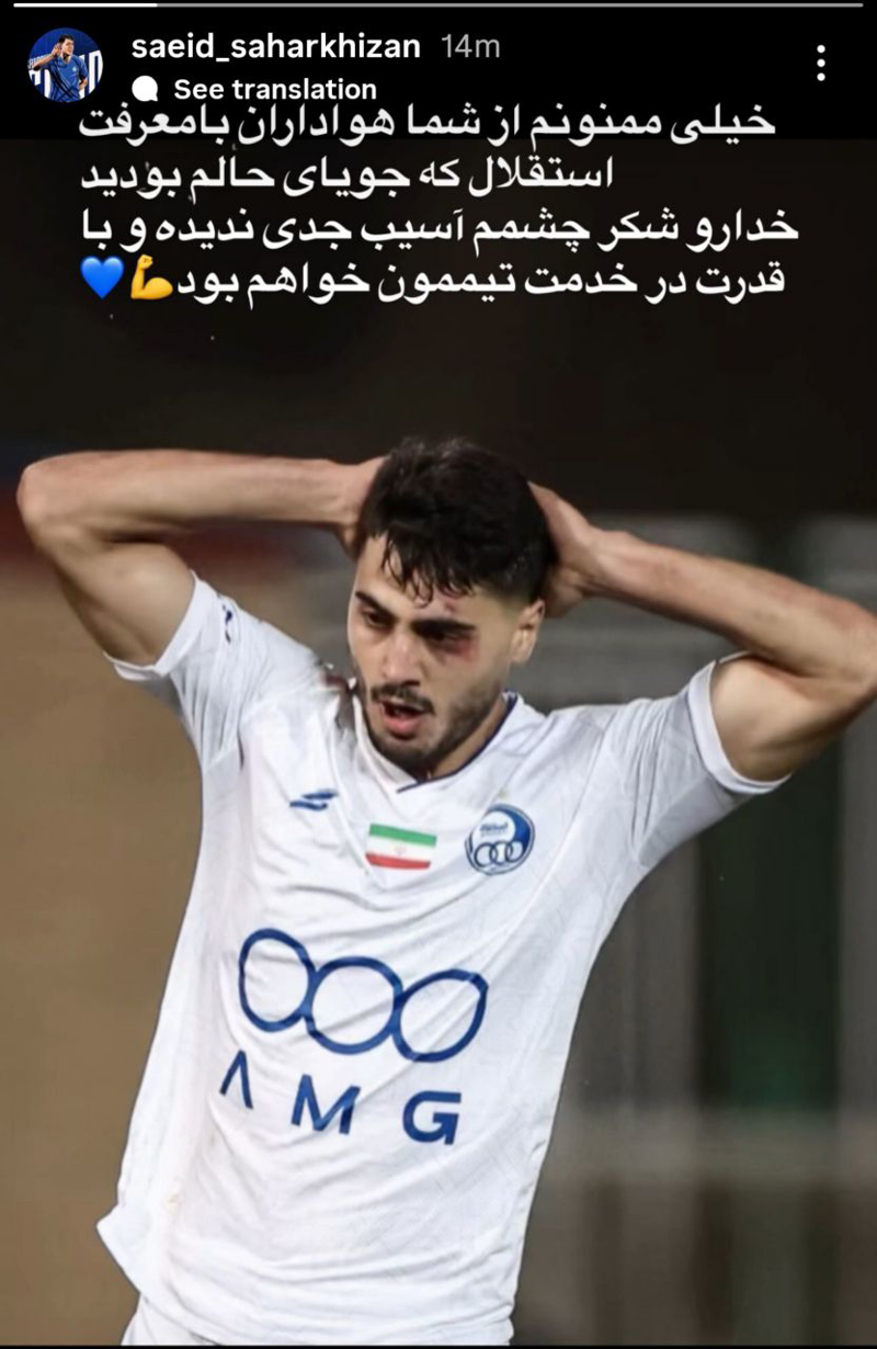 🌐👤 استوری سعید سحرخیزان پس از مصدومیت در دیدار شب گذشته استقلال و چادرملو